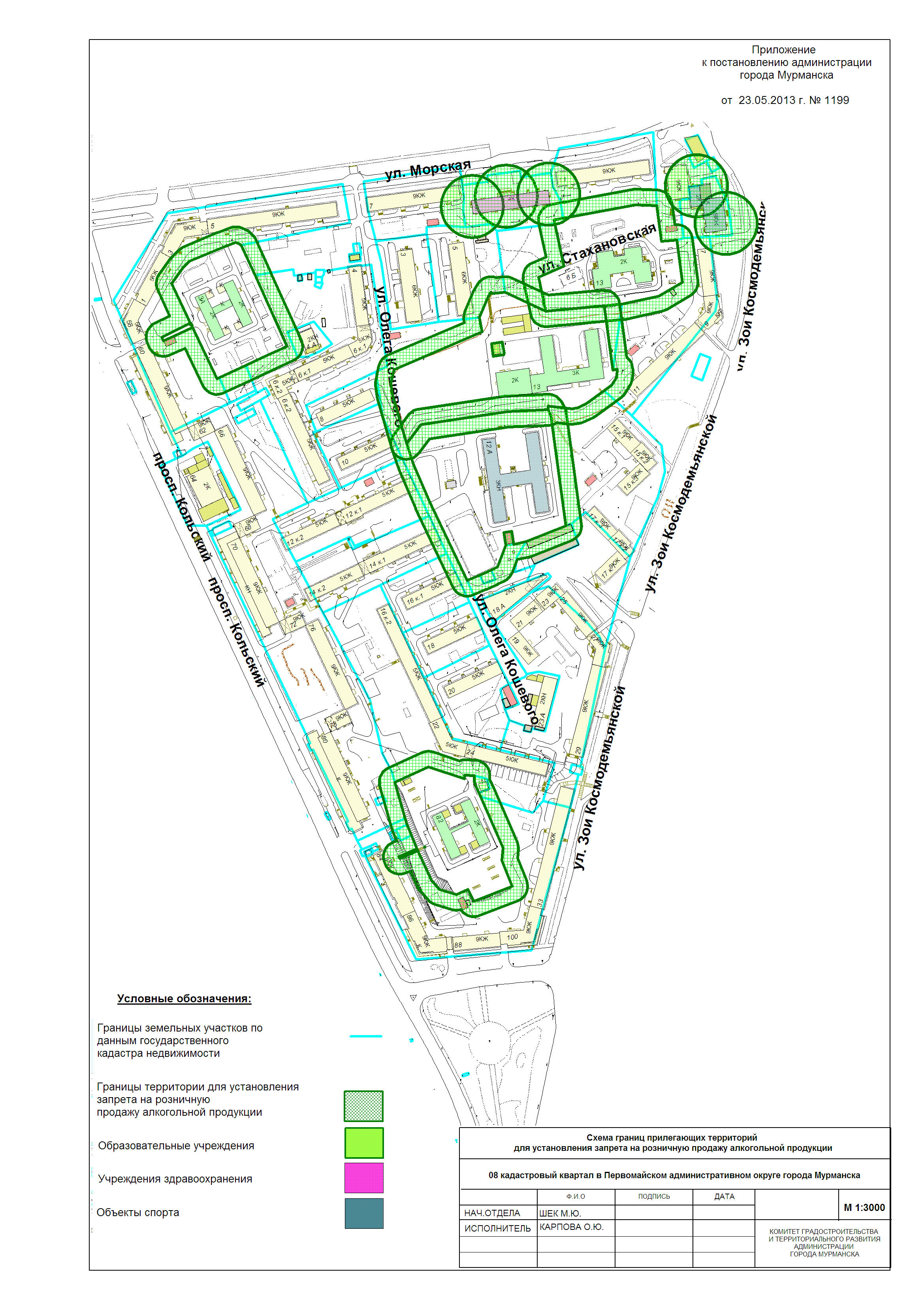 Об установлении границ прилегающих территорий для установления запрета на розничную продажу алкогольной продукции в 08 кадастровом квартале в Первомайском административном округе города Мурманска