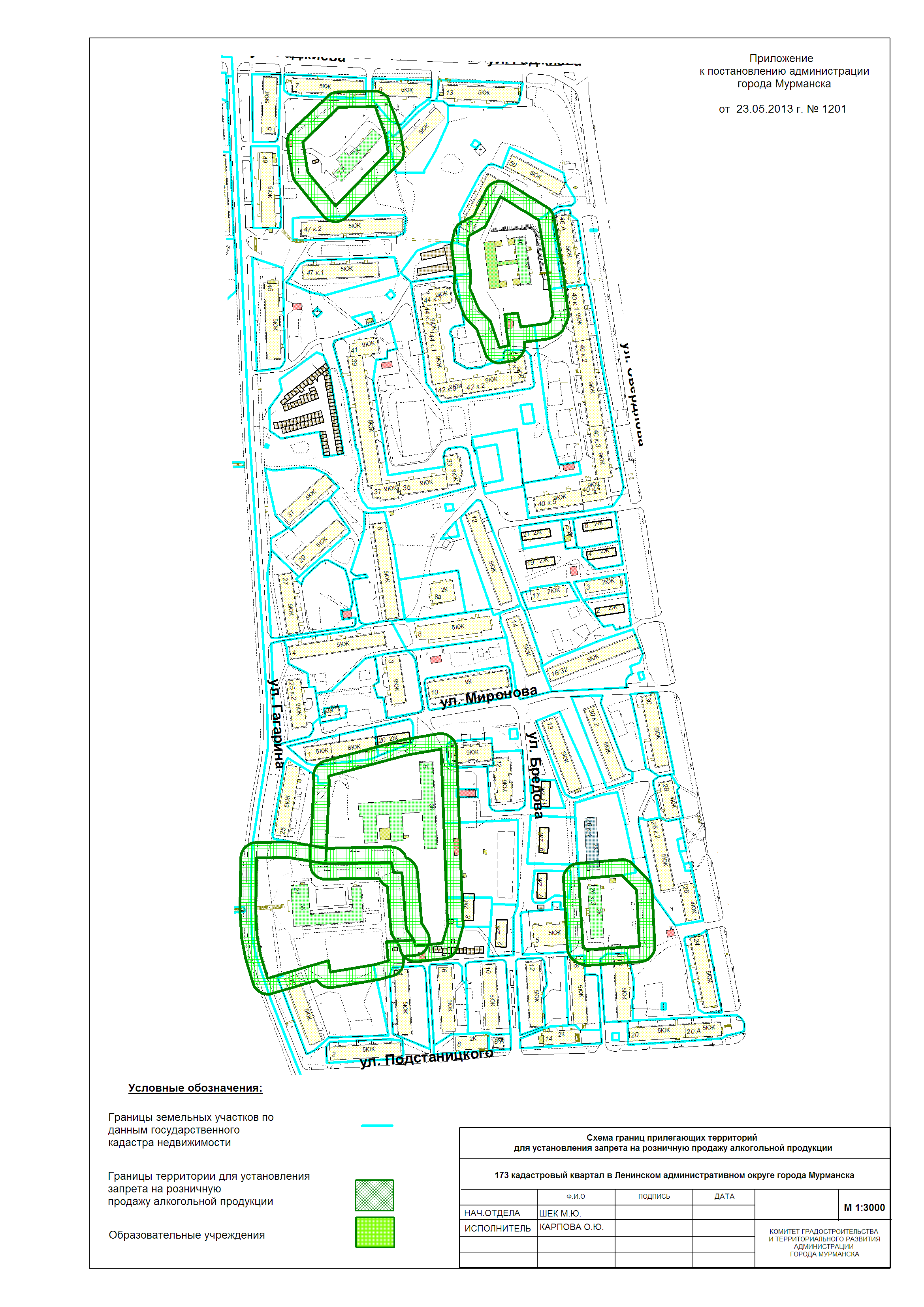 Об установлении границ прилегающих территорий для установления запрета на розничную продажу алкогольной продукции в 173 кадастровом квартале в Ленинском административном округе города Мурманска
