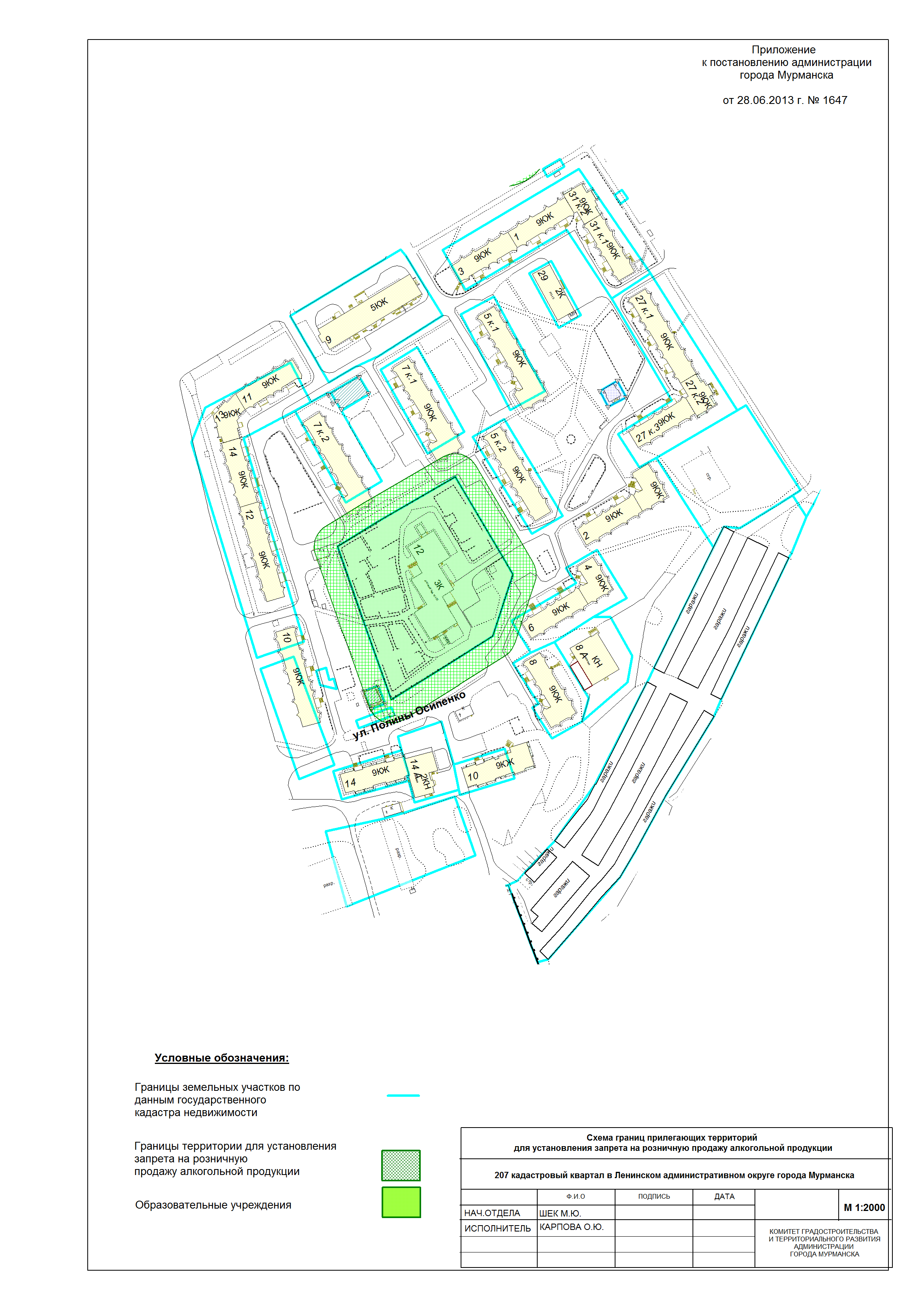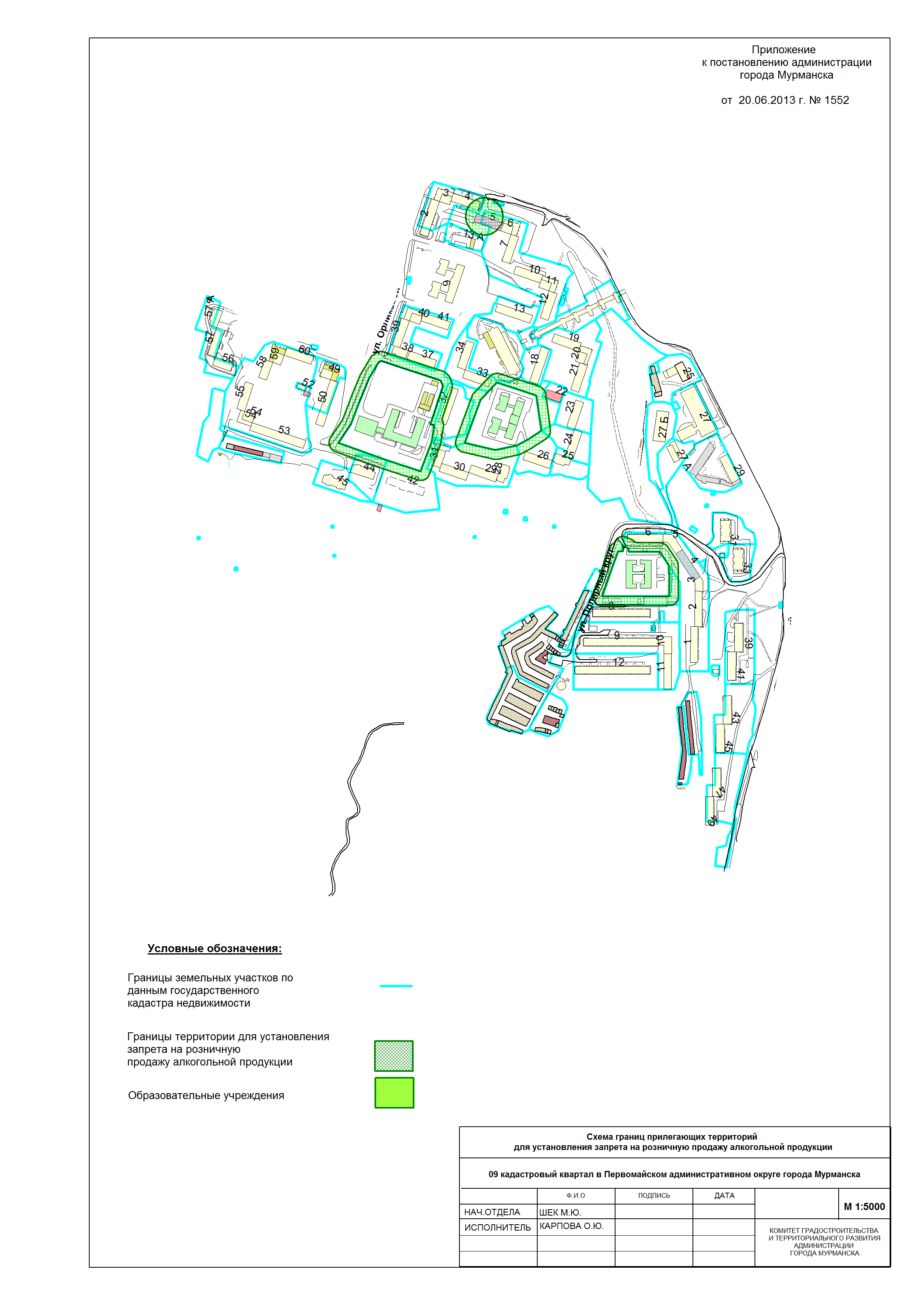Об установлении границ прилегающих территорий для установления запрета на розничную продажу алкогольной продукции в 09 кадастровом квартале в Первомайском административном округе города Мурманска |