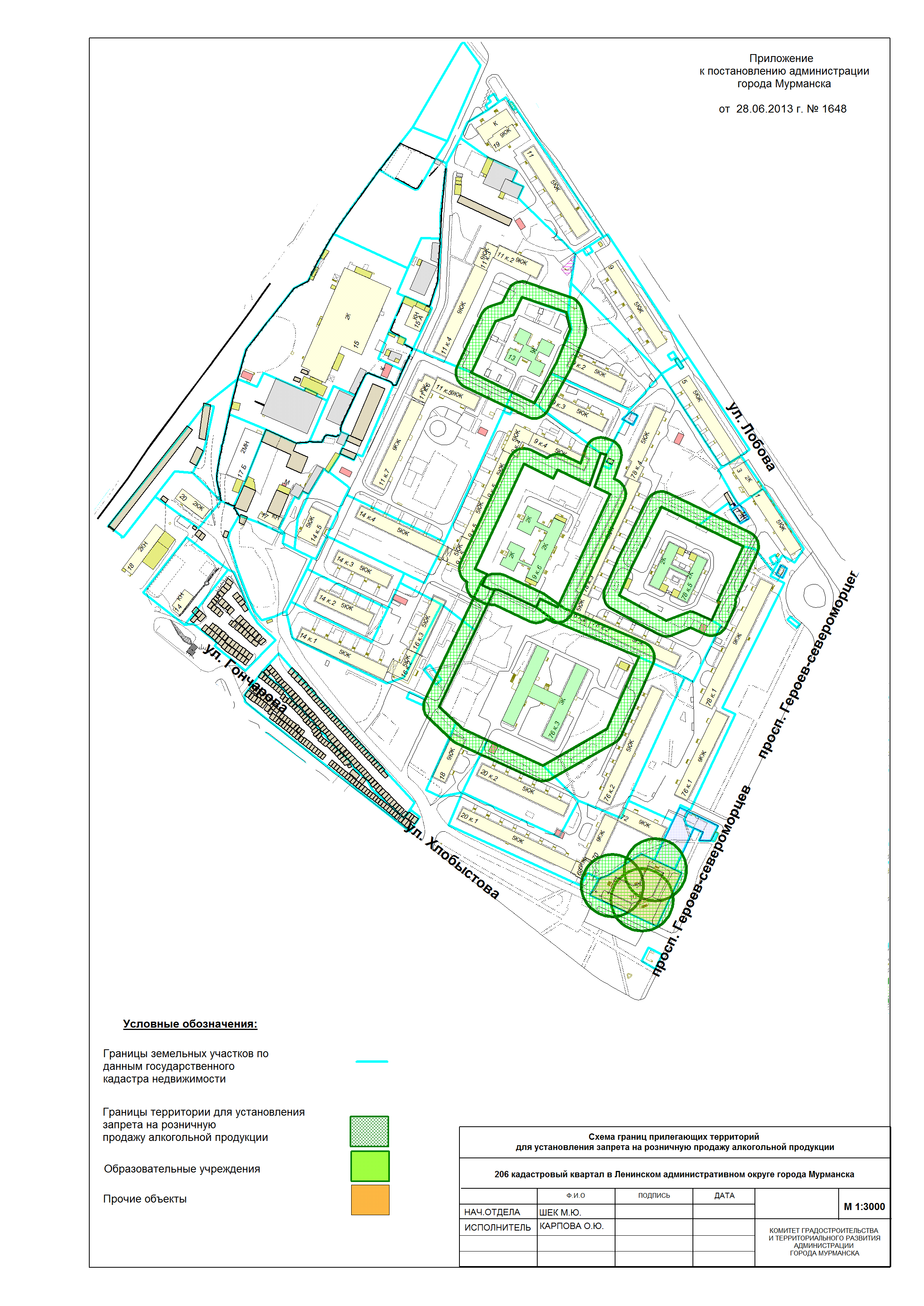 Об установлении границ прилегающих территорий для установления запрета на розничную продажу алкогольной продукции в 206 кадастровом квартале в Ленинском административном округе города Мурманска |
