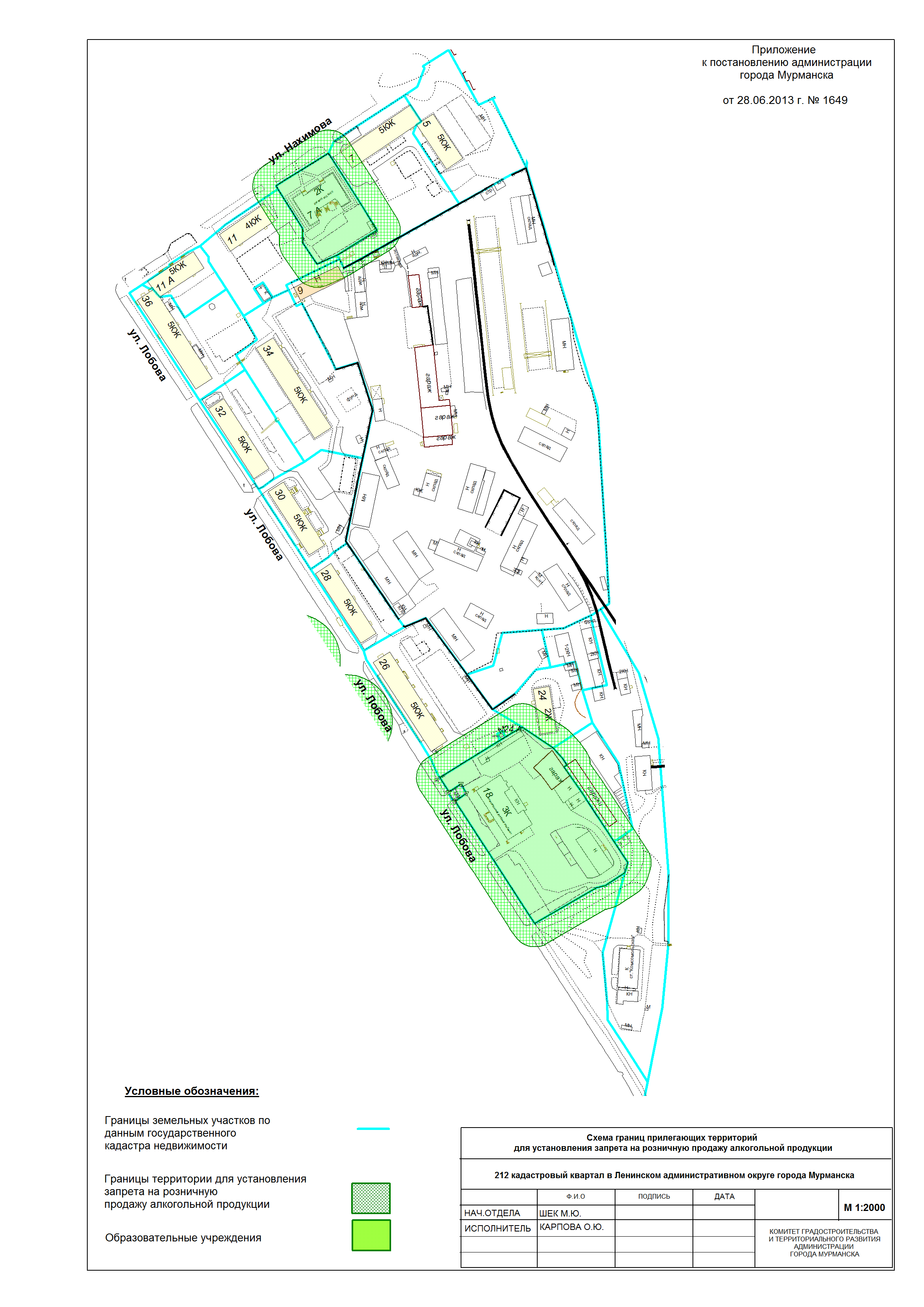 Об установлении границ прилегающих территорий для установления запрета на розничную продажу алкогольной продукции в 212 кадастровом квартале в Ленинском административном округе города Мурманска |