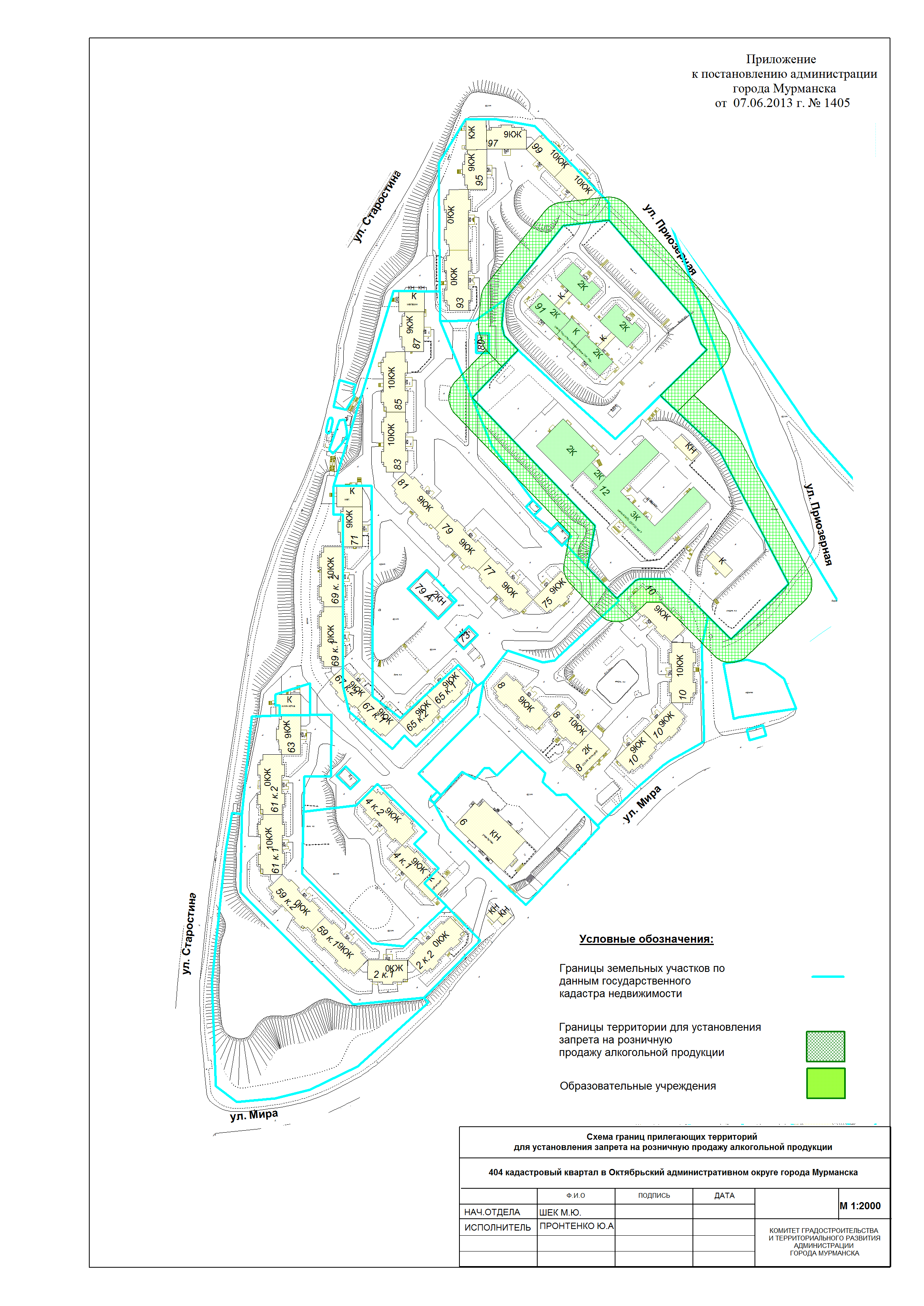 Об установлении границ прилегающих территорий для установления запрета на розничную продажу алкогольной продукции в 404 кадастровом квартале в Октябрьском административном округе города Мурманска |