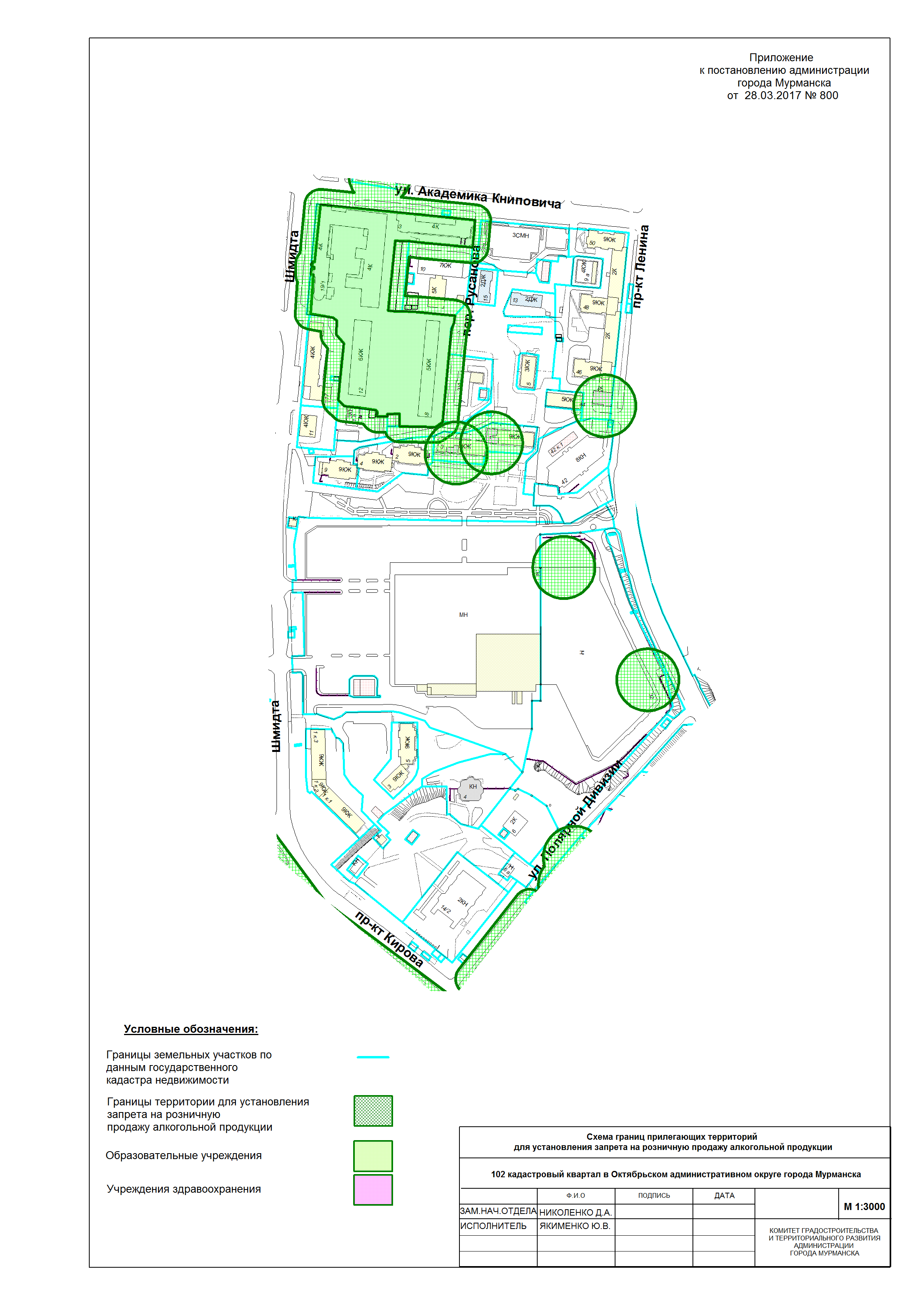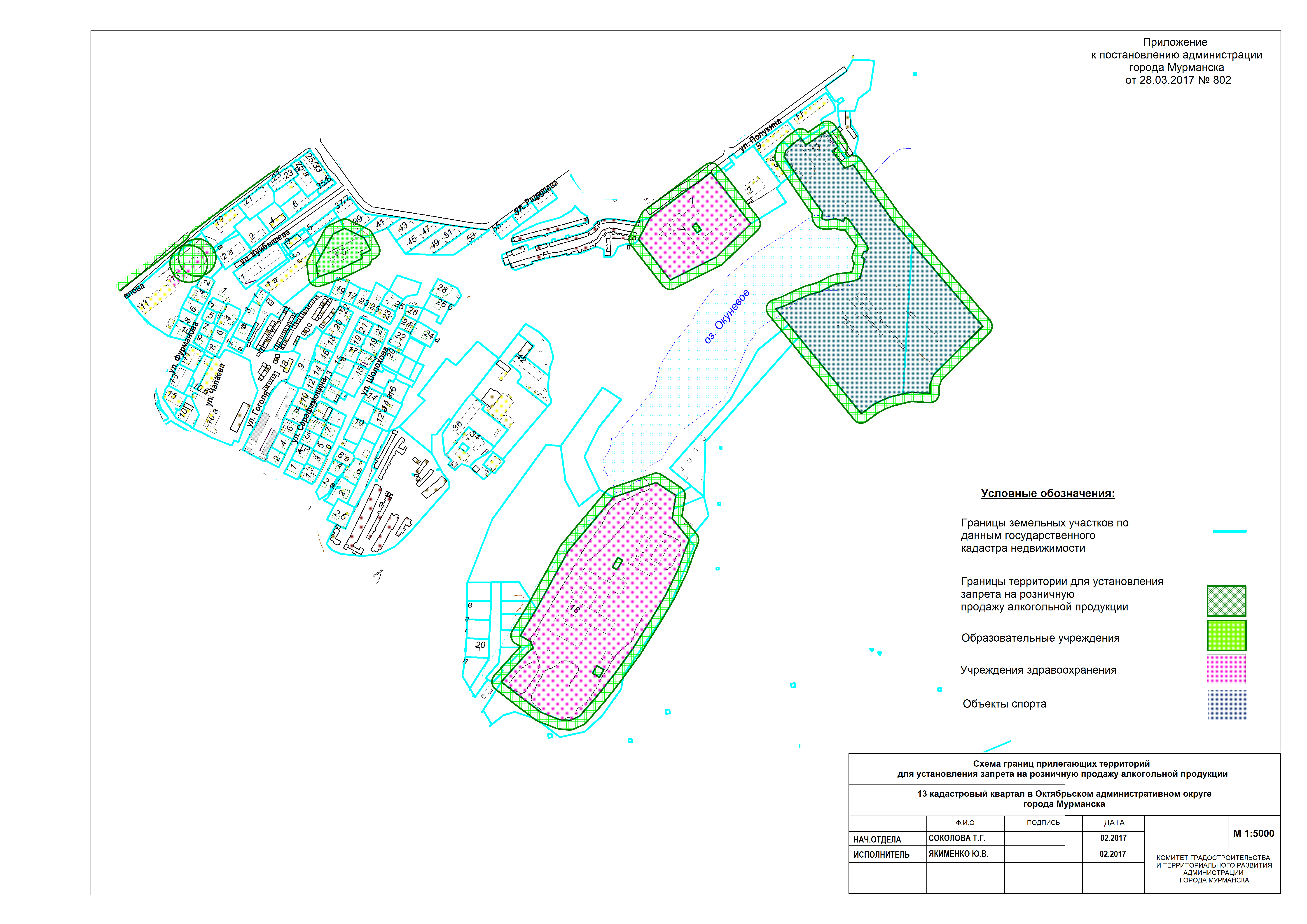 О внесении изменений в приложение к постановлению администрации города Мурманска от 07.06.2013 № 1404 "Об установлении границ прилегающих территорий для установления запрета на розничную продажу алкогольной продукции в 102 кадастровом квартале в Октябрьском административном округе города Мурманска" |
