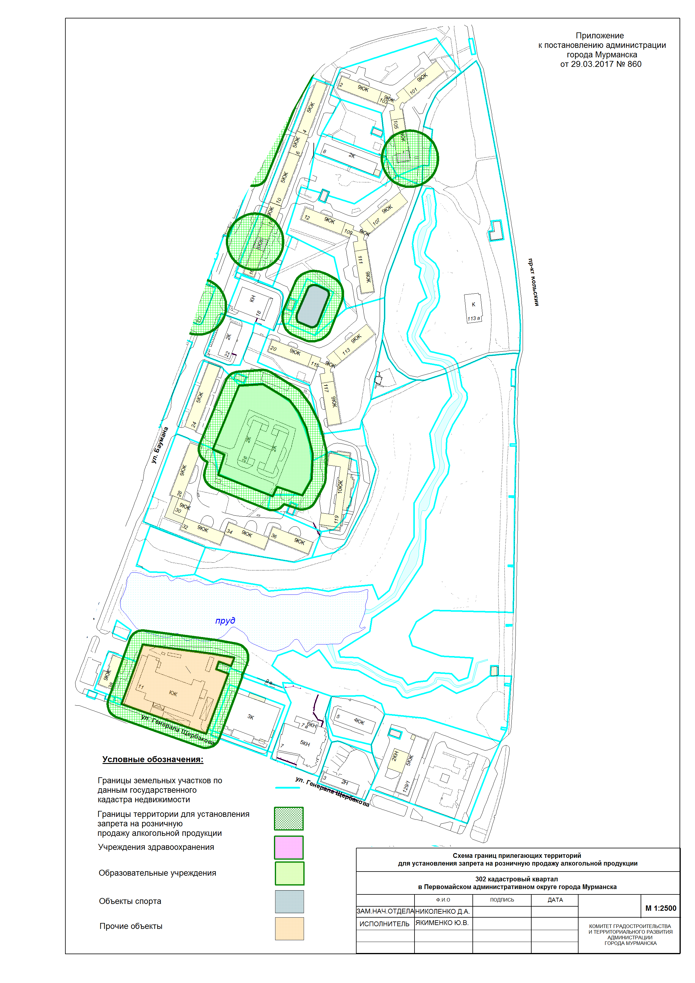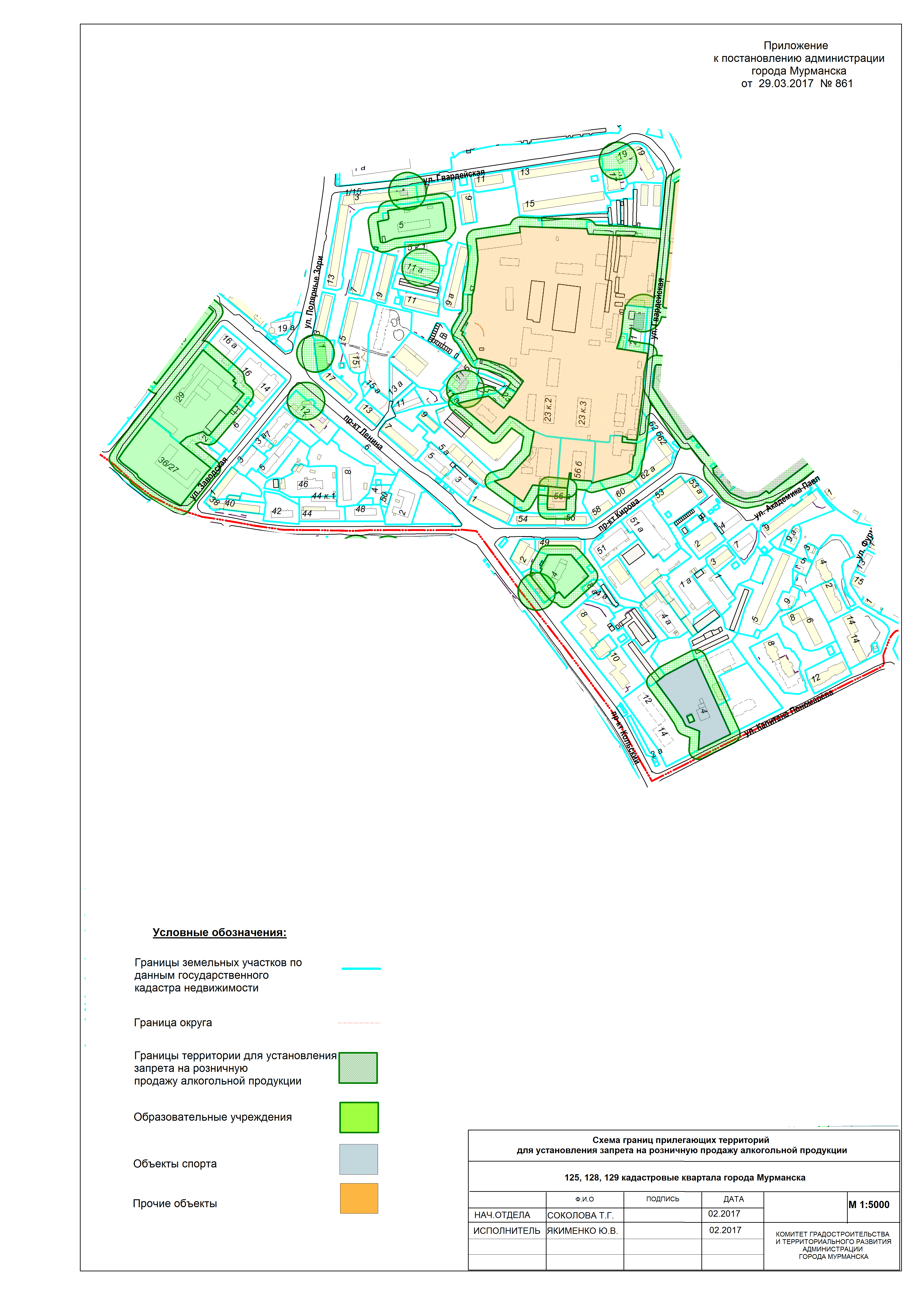 О внесении изменений в приложения к постановлению администрации города Мурманска от 19.04.2013 № 863 "Об установлении границ прилегающих территорий для установления запрета на розничную продажу алкогольной продукции в 70, 71, 82 кадастровых кварталах в Октябрьском административном округе города Мурманска" |