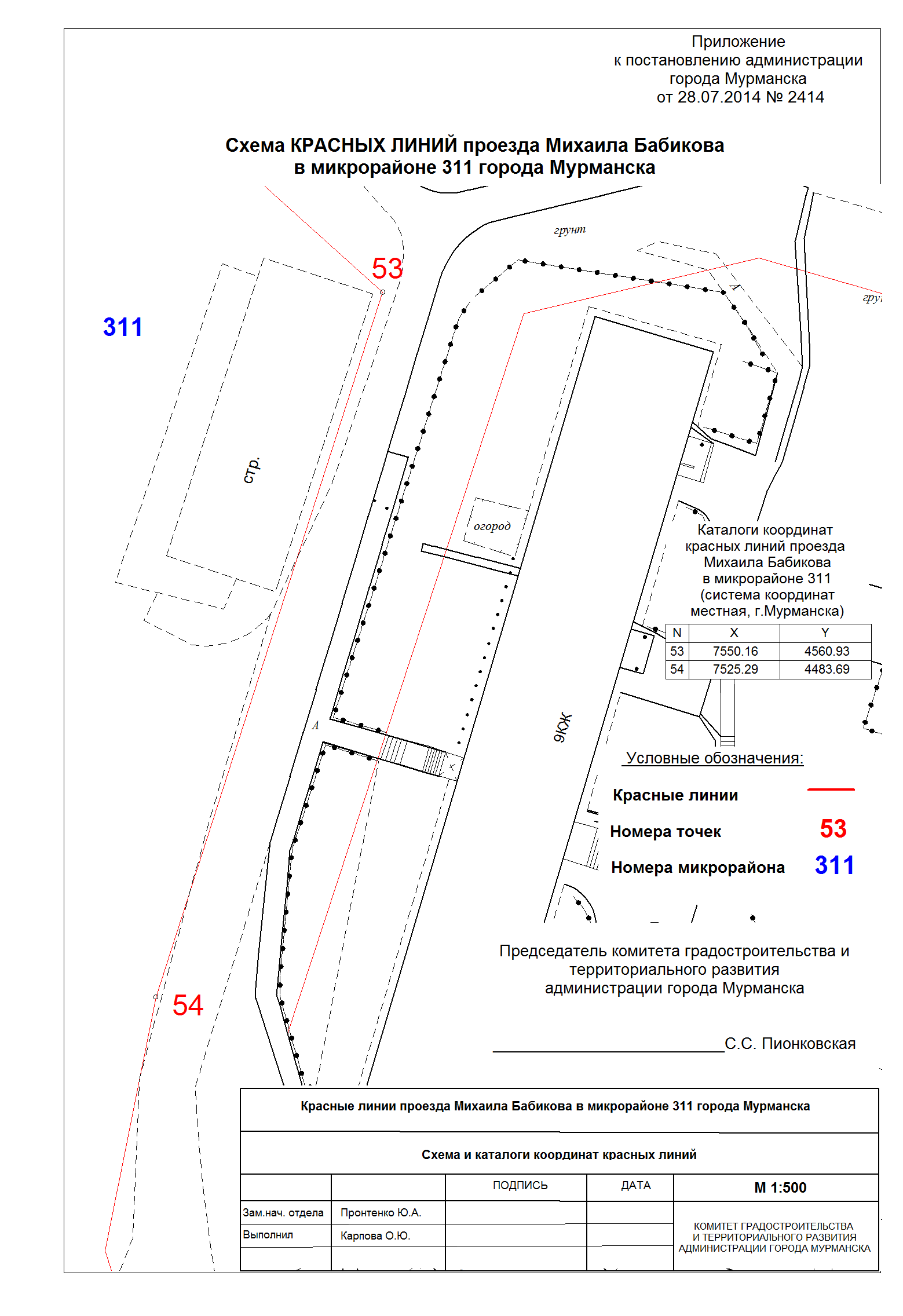 Об установлении красных линий микрорайонов 310, 311, 312, 313, района карьера «Желтая гора» и оз. Глубокого города Мурманска |