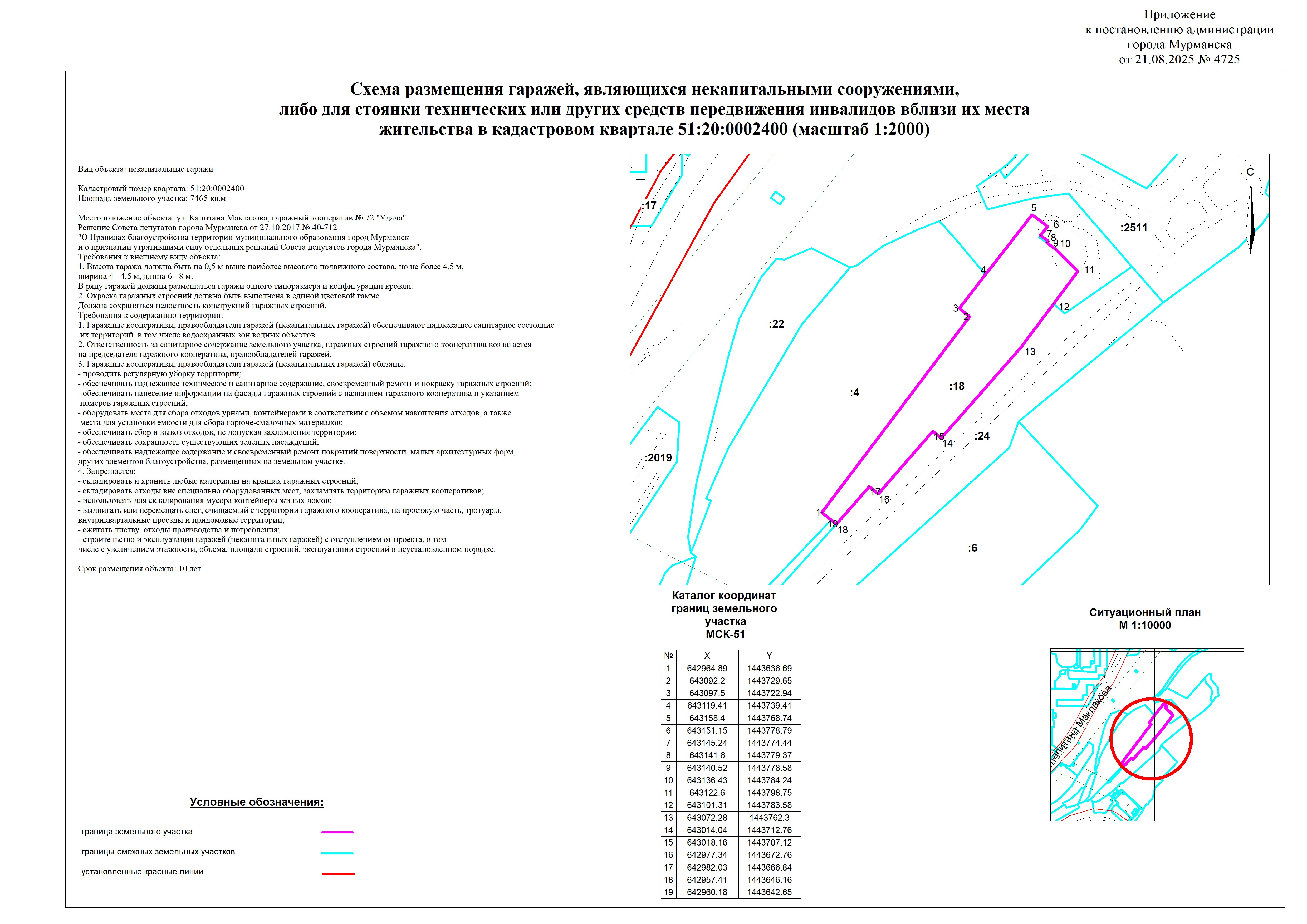 О внесении изменений в приложение к постановлению администрации города Мурманска от 19.05.2025 № 2264 «Об утверждении схемы размещения гаражей, являющихся некапитальными сооружениями, либо для стоянки технических или других средств передвижения инвалидов вблизи их места жительства на земельном участке с кадастровым номером 51:20:0002400:18» |