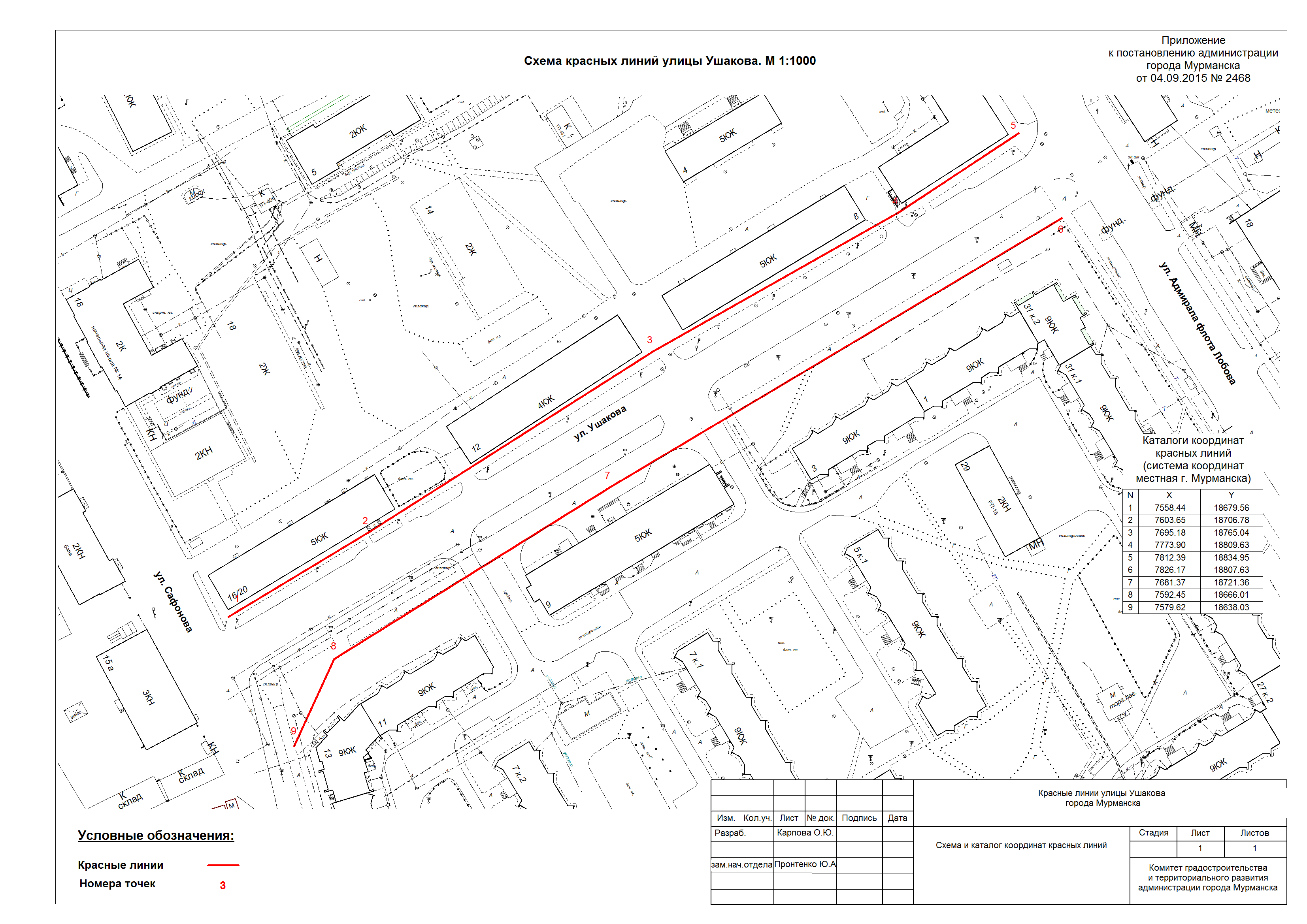 Об установлении красных линий улицы Ушакова города Мурманска |
