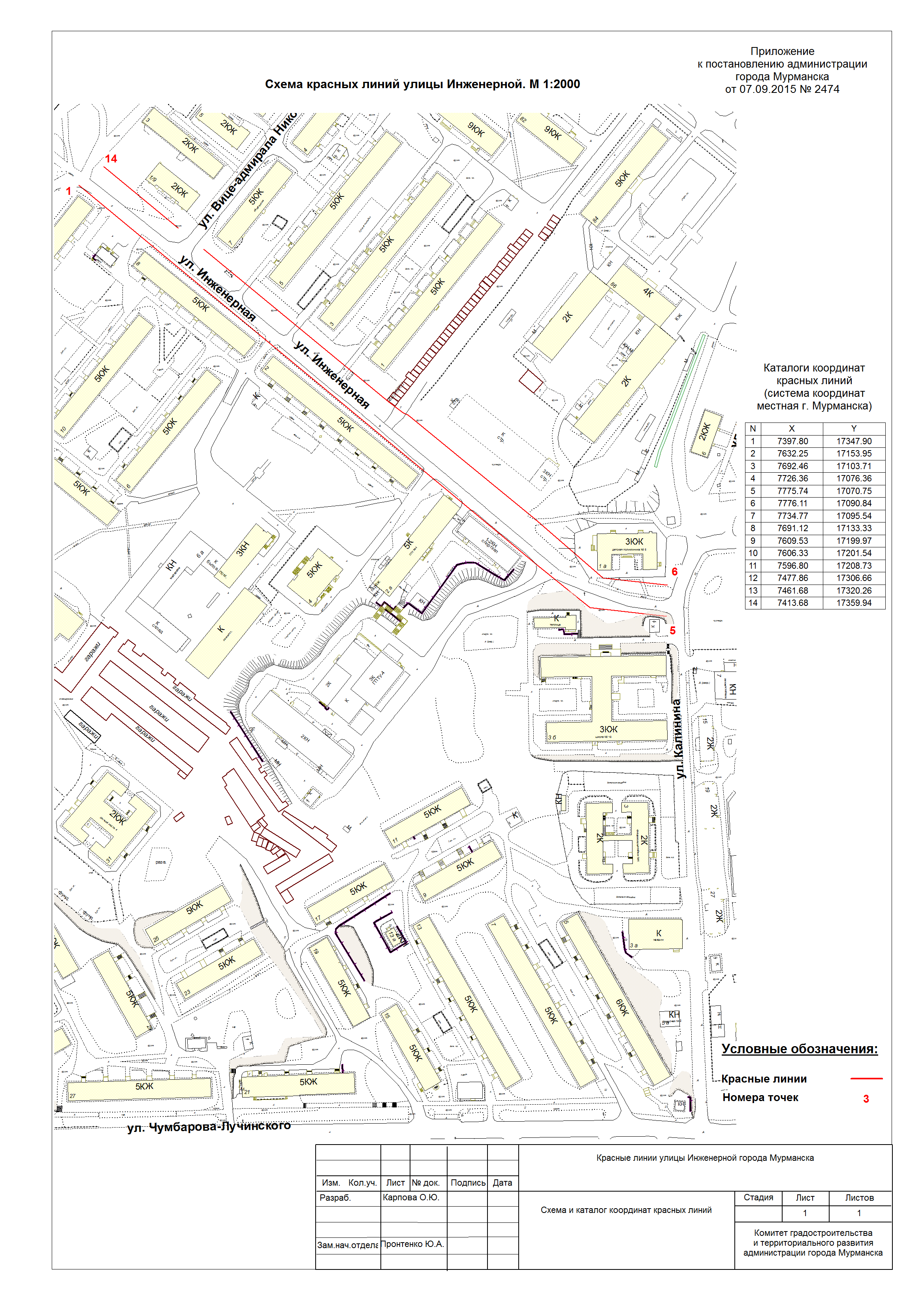 Об установлении красных линий улицы Инженерной города Мурманска |