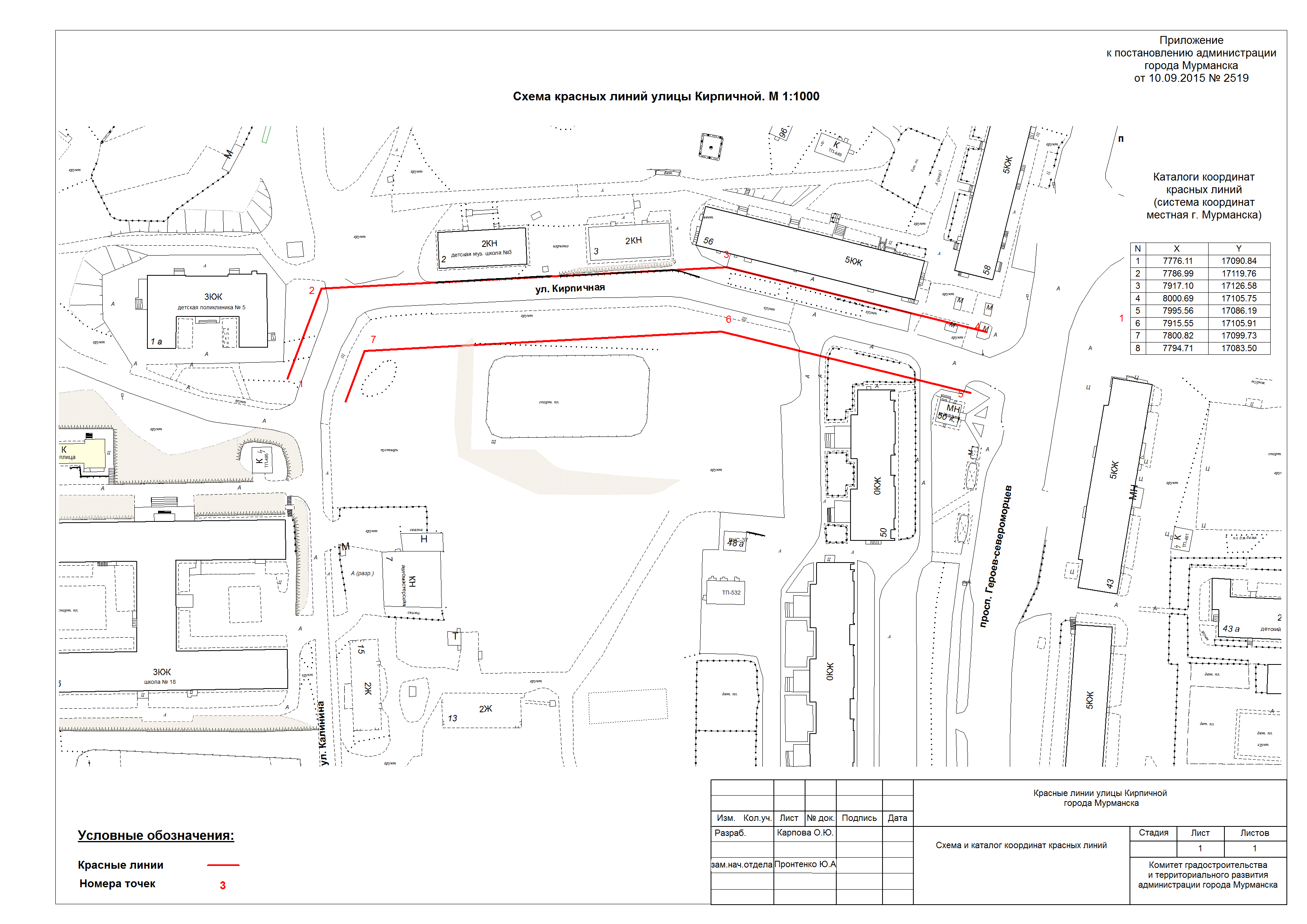 Об установлении красных линий улицы Кирпичной города Мурманска |