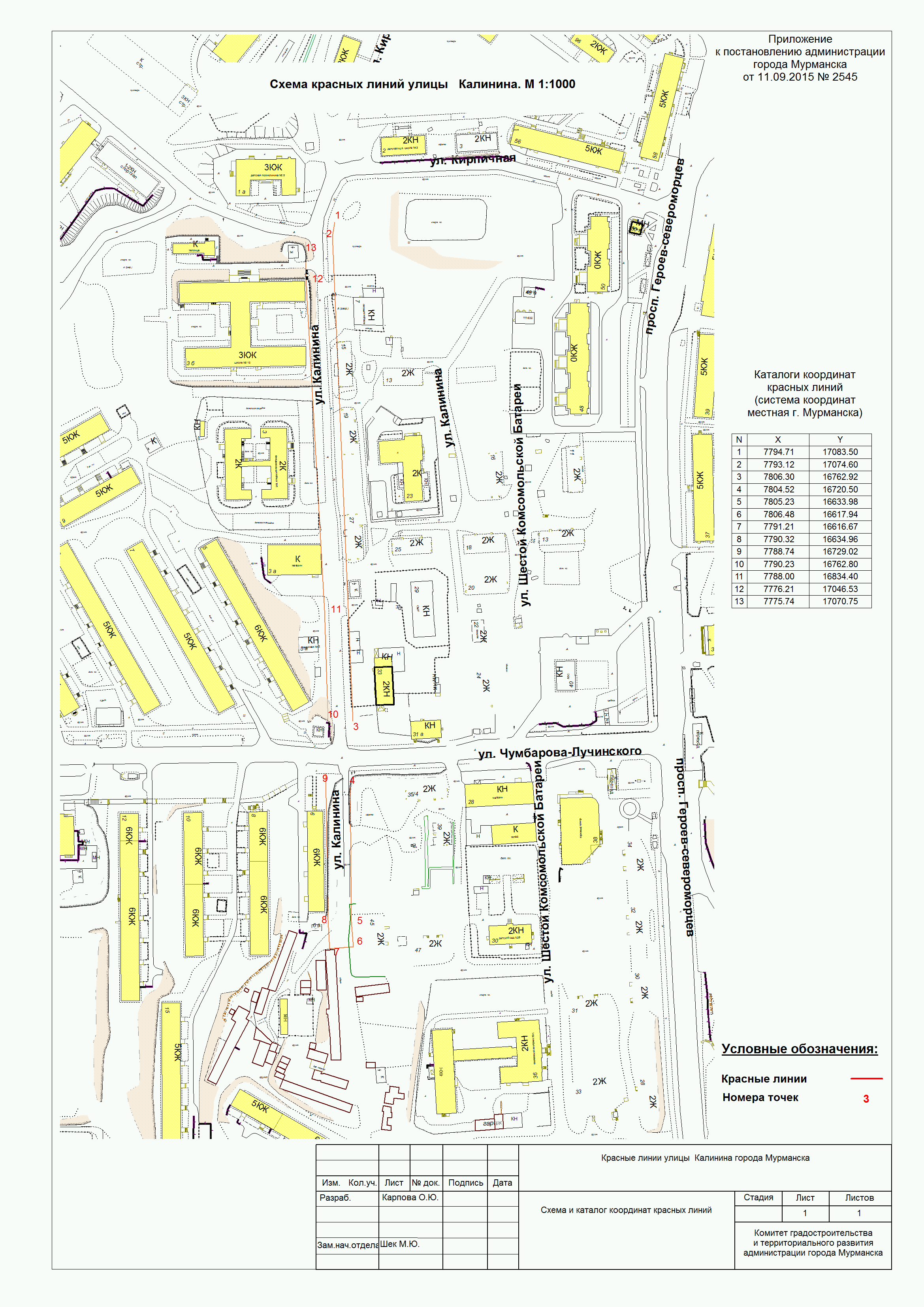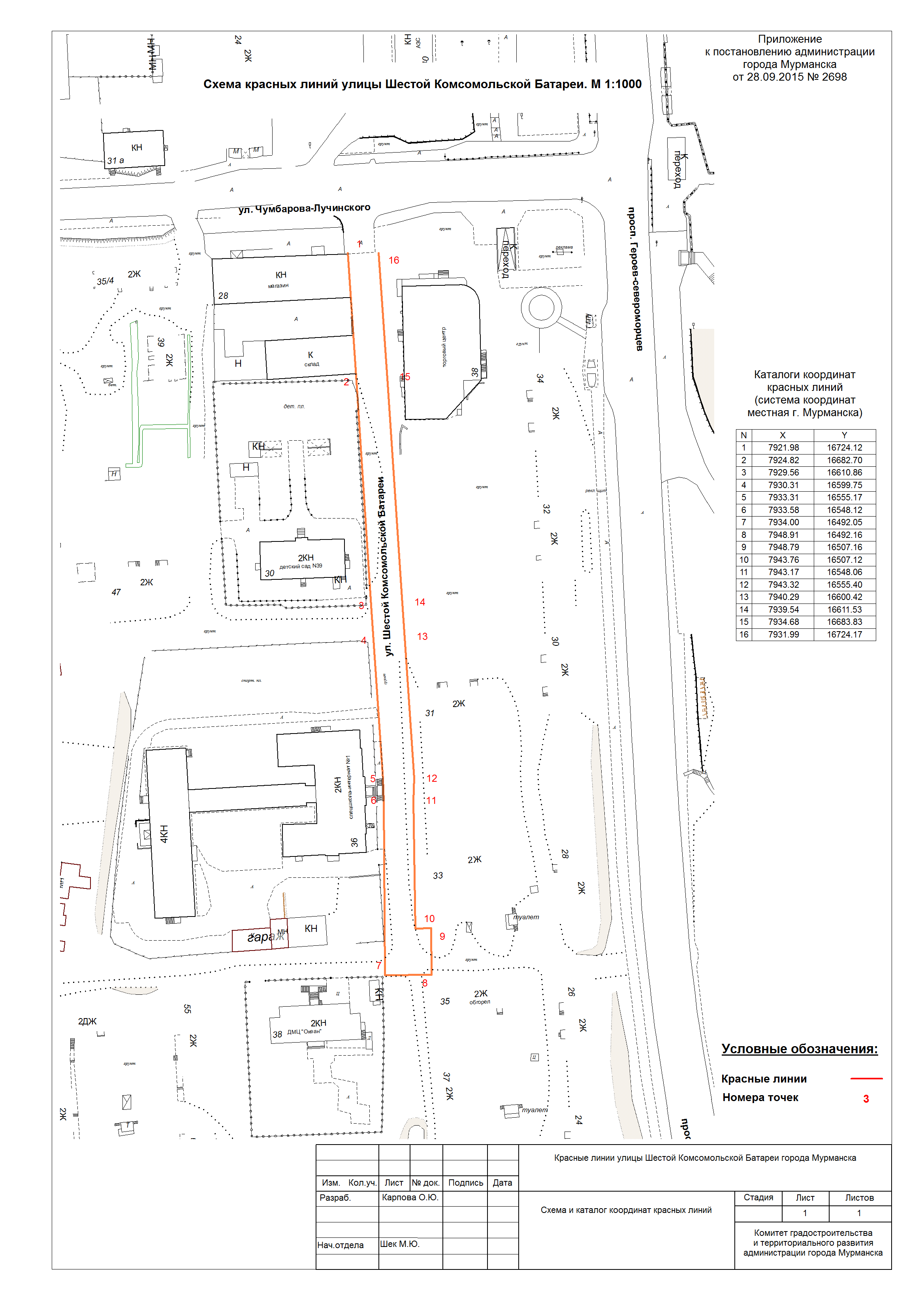 Об установлении красных линий улицы Шестой Комсомольской Батареи города Мурманска |