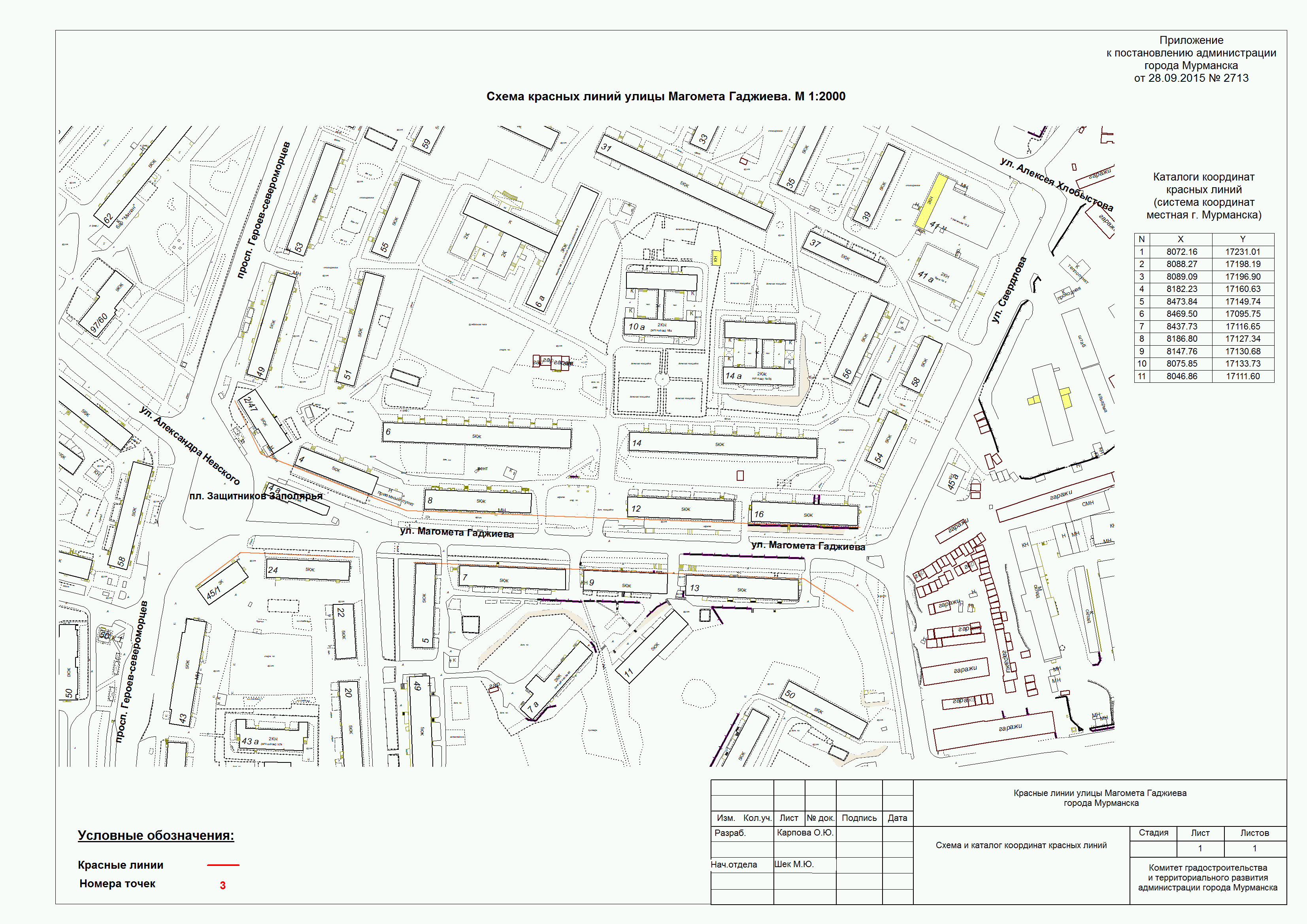 Об установлении красных линий улицы Магомета Гаджиева города Мурманска |