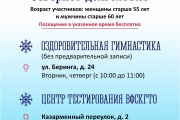 Возраст участников: женщины старше 55 лет и мужчины старше б0 лет. Посещение всех мероприятий в указанное время — бесплатно.