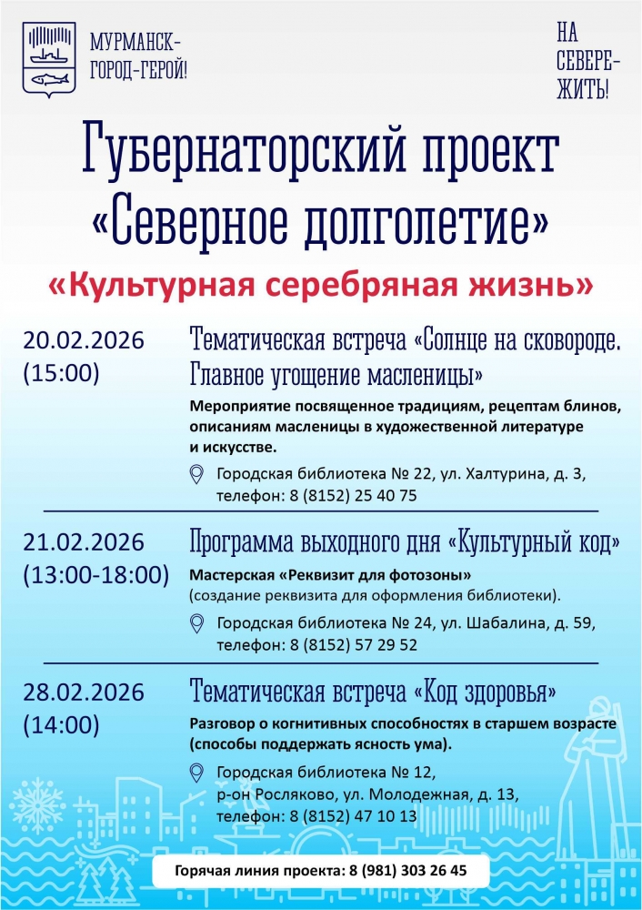 Анонсы бесплатных мероприятий в учреждениях культуры города Мурманска: