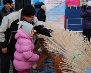 В преддверии Дня народного единства на центральной площади заполярной столицы было установлено бревно для голосования, символизирующего городской бюджет. Его разделили на 9 секторов – образование, здравоохранение, строительство социального жилья, ремонт дорог, ЖКХ, транспорт и другие.