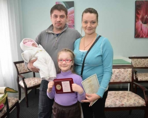 - Я о вручении медалей новорожденным узнала, когда была еще в роддоме. Мне очень понравилась эта идея, и я рада, что сегодня и наша малышка получит такой красивый знак отличия. Теперь на память из детства у нашей Катюши останутся не только фотографии, но и что-то более весомое, - считает Татьяна Ксендзюк.