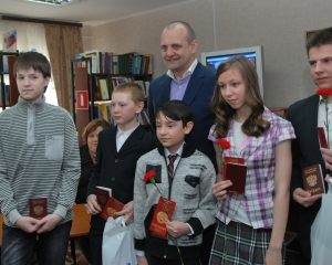 Сегодня в филиале №9 Центральной детской библиотеки прошла торжественная церемония вручения паспортов юным мурманчанам, достигшим четырнадцатилетнего возраста. Учащимся школы №41 посчастливилось получить самый главный документ из рук главы администрации города Мурманска.