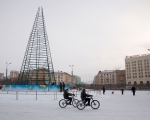 К концу недели в Мурманске демонтируют главную городскую елку. Большая часть работ уже сделана. Гирлянды и лапки сняли, осталось разобрать только нижнюю часть каркаса и убрать ограждение.