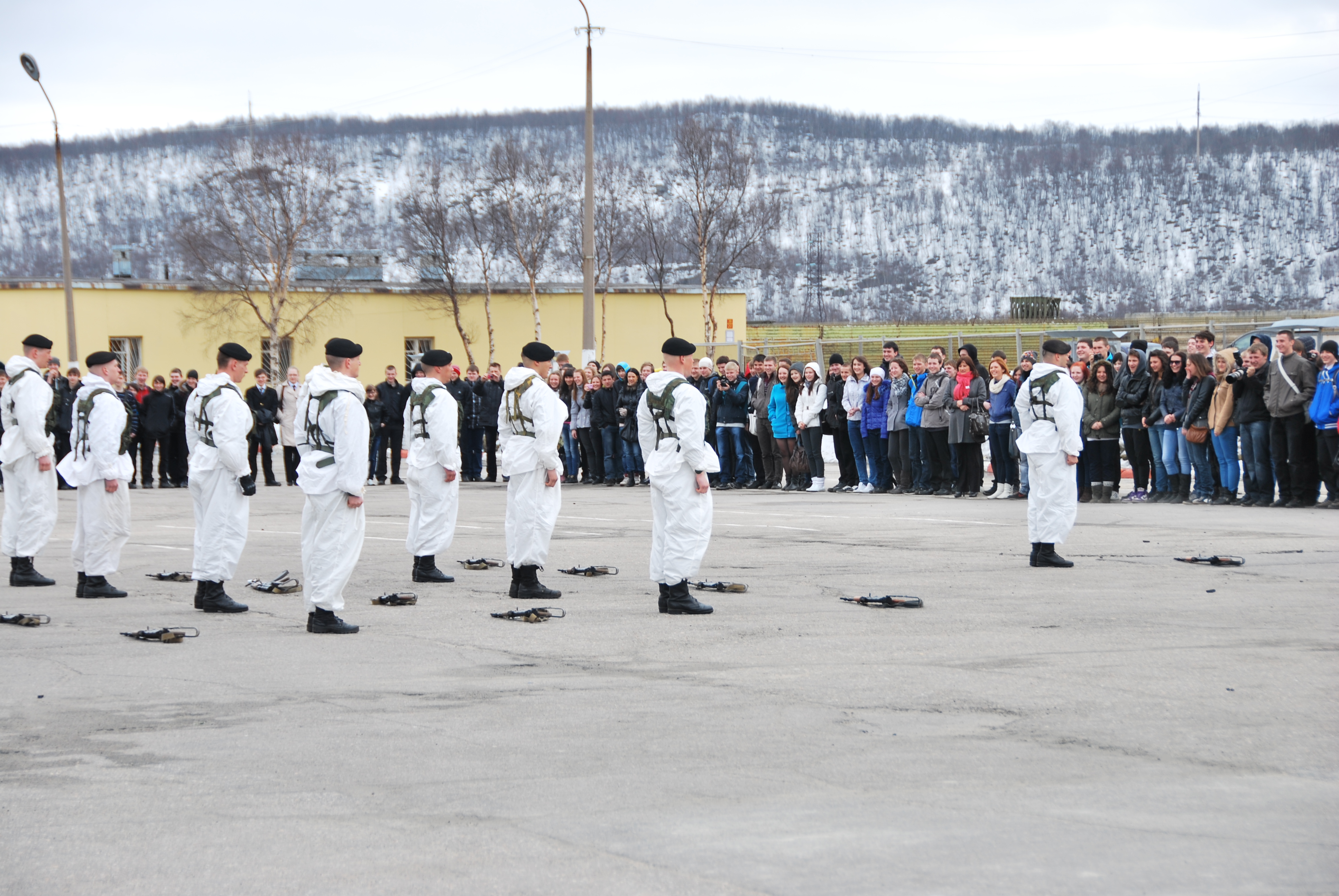 Для гостей был организован праздничный концерт, а также показательные выступления морских пехотинцев Северного флота. Кроме того, ребята ознакомились с армейским бытом, увидели боевое оружие и военную технику, отведали солдатской каши.