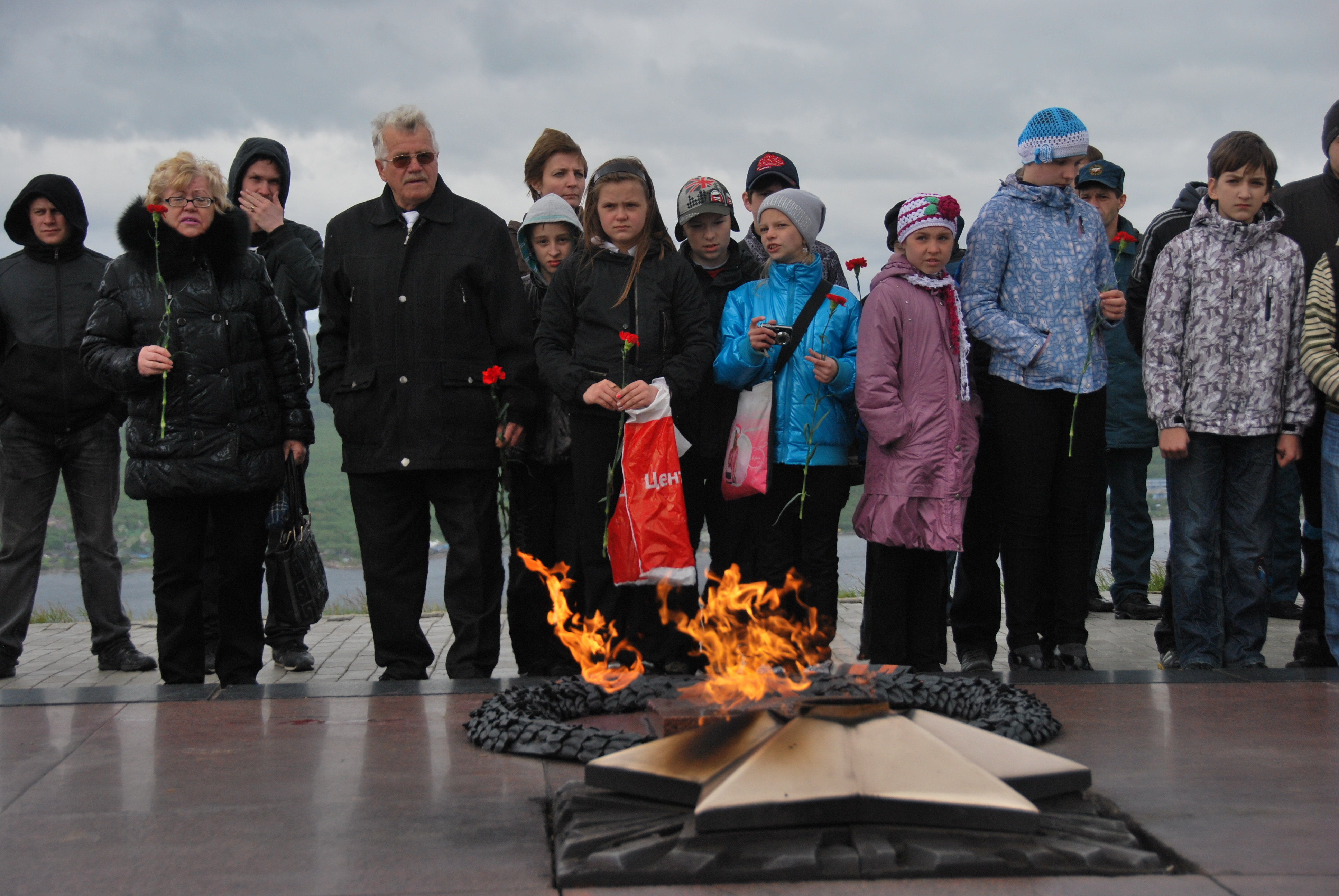 Митинг завершился минутой молчания и возложением цветов к Вечному огню.