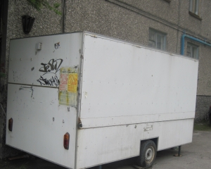 – одноосный торговый прицеп, цвет белый, серийный номер не установлен, регистрационные знаки отсутствуют, примерные габаритные размеры 4,8*2,0*2,5. Ранее установлен в районе дома № 15 по ул. Орликовой;