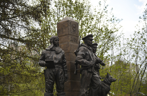 Памятник установлен в сквере у областного драматического театра. Он символизирует северные скалы, на которых возвышается легендарный пограничный столб – рубеж российско-финляндской границы, который не смогли преодолеть фашистские войска. Вокруг него застыли скульптуры, представляющие различные рода пограничных войск: сухопутные, морские и воздушные. И конечно, с ними верный друг и помощник – собака. Автором композиции стал заслуженный скульптор России Иван Мельников из Смоленска. К слову, автор проекта сам когда-то служил на границе.