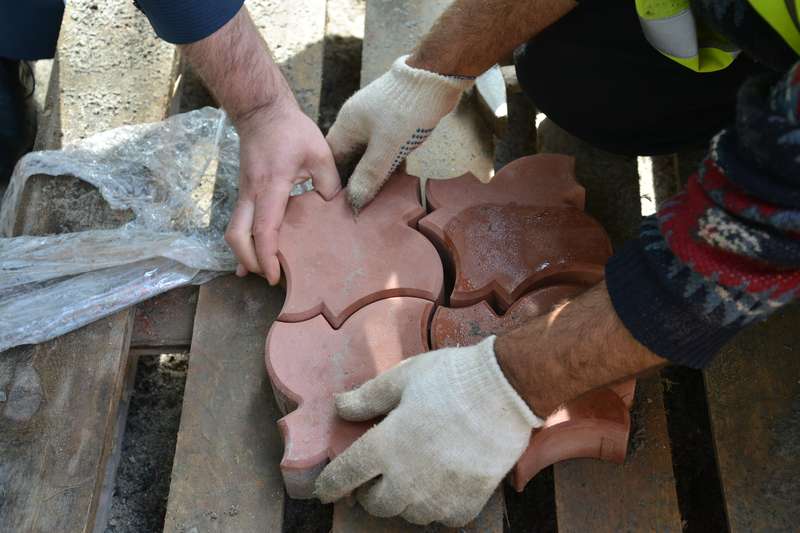 "Кленовые листья" фигурной плитки придется собирать, как пазлы.