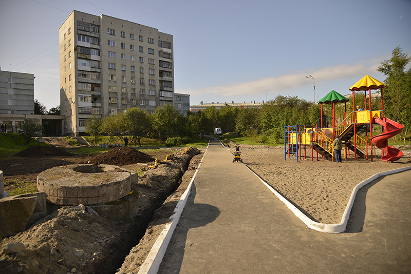 Работа здесь почти завершена, осталось положить травмобезопасное тартановое покрытие. Со дня на день рядом с игровым комплексом появятся новенькие качели, а по периметру – яркие лавочки. Только вот попасть на площадку строителям крайне сложно: теперь здесь целый день хозяйничают маленькие мурманчане и ни в какую не хотят покидать любимое место отдыха.