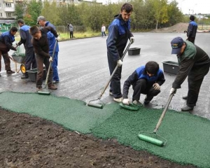 Все больше спортплощадок мурманских школ получают второе рождение. Сначала их асфальтируют, а затем сверху укладывают покрытие из резиновой крошки, по которому удобно бегать, не боясь покалечиться при падении.