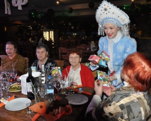 Конечно, в преддверии праздника никуда без подарков от Деда Мороза. Главного новогоднего волшебника вместе со Снегурочкой ветераны, как дети, дружно звали в праздничный зал на торжество. И новогодний Дед с внучкой появились, разумеется, с большим мешком подарков. Что не могло не усилить радостную ноту. Под звон бокалов с шампанским и новогодние песни звучали тосты и пожелания.