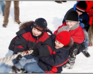 В программе – подвижные игры, эстафеты, конкурсы с обручами, веселые старты, перетягивание каната, командные и личные конкурсы.