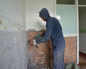 Пока помещения таковыми назвать сложно. Посреди комнаты красуются две демонтированные раковины, стены ободраны, потолки размыты. Ждут своей участи оконные блоки. Скоро их заменят стеклопакетами. Основная работа кипит пока в подвале: там меняют инженерные сети. Косметический ремонт завершит комплекс работ.