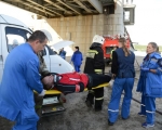 Плавающая в Кольском заливе легковушка и суетящиеся на берегу пожарные, спасатели, работники скорой медицинской помощи и представители других тревожных служб Мурманска - такая картина в этот раз обозначала не реальную аварию, а тактико-специальные учения по ликвидации последствий крупного дорожно-транспортного происшествия.