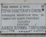Шестьдесят лет назад с карты города исчезла улица Рабочая, а на ее месте появилась улица Генералова. Чуть позже на доме № 13 была установлена мемориальная доска, посвященная Герою Советского Союза Алексею Генералову.