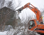 Дом № 20 на улице Фрунзе стал первым в этом году, который пошел под снос. Аварийная "деревяшка" стояла по соседству с недавно построенным новым социальным домом.