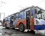 Вчера на улицы Мурманска вышел троллейбус, украшенный виниловыми наклейками с символами 70-летия Победы в Великой Отечественной войне и акции "Бессмертный полк". Это уже вторая машина ОАО "Электротранспорт", облик которой напоминает о приближающемся празднике 9 Мая. На задней площадке салона размещены портреты героев и ветеранов войны в Заполярье Александра Григорьевича Торцева, Ильи Алексеевича Горячкина, Михаила Ивановича Беседина, Ивана Алексеевича Бородулина.
