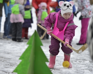 Участники не успевают отдышаться, веселый снеговик раздает командам все новые и новые задания. Несмотря на непогоду, весенняя прогулка для детей выдалась интересной и разнообразной. В программе - конкурсы, эстафеты, спортивные состязания. На соседней площадке ребята постарше забрасывают мяч в баскетбольное кольцо.