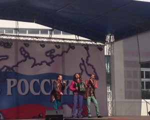 После торжественной церемонии вручения на сцене перед гостинично-деловым центром «Арктика» начался концерт, в котором приняли участие как мурманские творческие коллективы, так и гости из столицы – ансамбль «Садко».