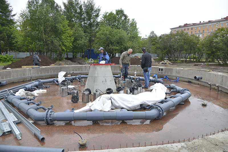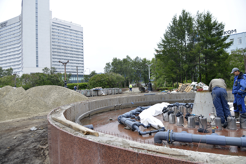 Близится к завершению и ремонт сквера напротив Дворца культуры имени С.М. Кирова. По словам подрядчика, более половины работ уже выполнено. Завершается обустройство фонтана в центре парка, затем начнется облицовка этой части сквера гранитной плиткой. Сейчас строители выравнивают площадки и укладывают брусчатку на пешеходных дорожках.