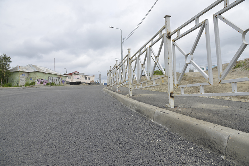 В этом году подрядчик выполнил все работы по установке бортового камня, обустройству тротуаров и дорожного полотна площадью почти 6 тысяч квадратных метров. Сейчас строители устанавливают металлические ограждения вдоль тротуара.