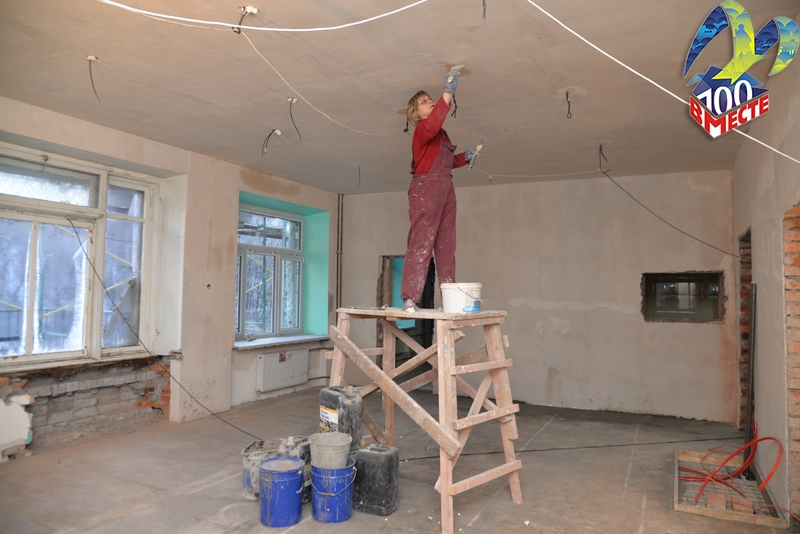 Судьба здания непростая: когда-то здесь располагался детский сад, потом спортивная школа, поэтому строительство фактически пришлось начинать заново. Сейчас реконструкция вышла на финишную прямую: рабочие занимаются внутренней отделкой помещений.