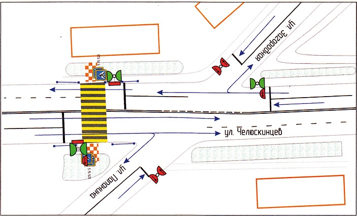 Еще один светофорный объект появится на подъеме от улицы Челюскинцев к Семеновскому озеру. Он будет работать в двух фазах.