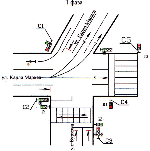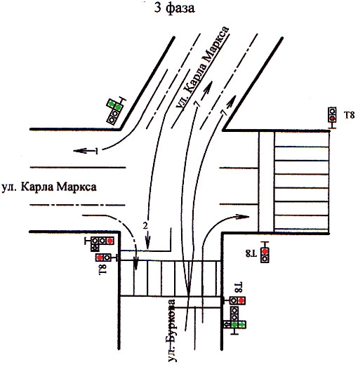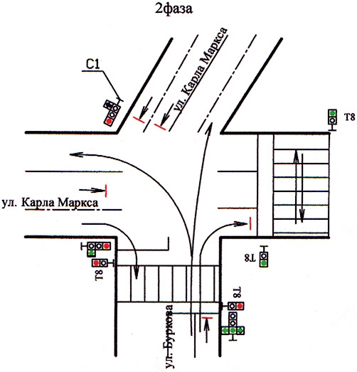 В связи с появлением новых светофорных объектов на перекрестке улиц Карла Маркса и Буркова будет организована новая схема дорожного движения.