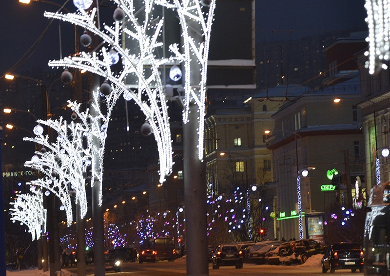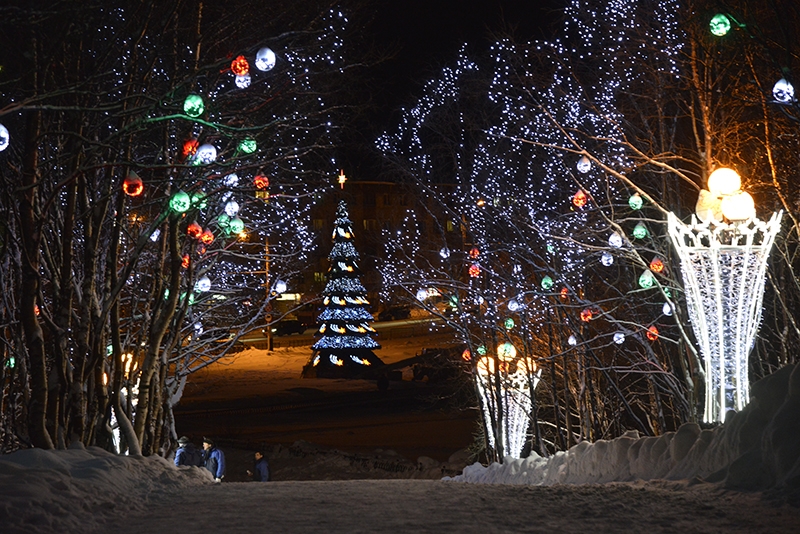 В этом году горожан снова будет радовать яркая иллюминация. Сегодня рабочие продолжают украшать мурманские улицы, работают исключительно ночью, чтобы не мешать мурманчанам и движению транспорта. Праздничными огнями засияют парки и скверы и, конечно же, проспект Ленина, проспект Кольский, площадь Пять Углов, зона отдыха возле Семеновского озера, основные городские магистрали.