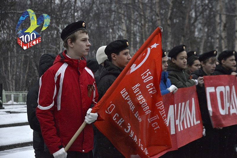 В митинге приняли участие ветераны Великой Отечественной войны, почетные граждане заполярной столицы, представители администрации Мурманска и, конечно, школьники - ученики кадетского класса школы № 44 и ребята из молодежного центра гражданско-патриотического воспитания.