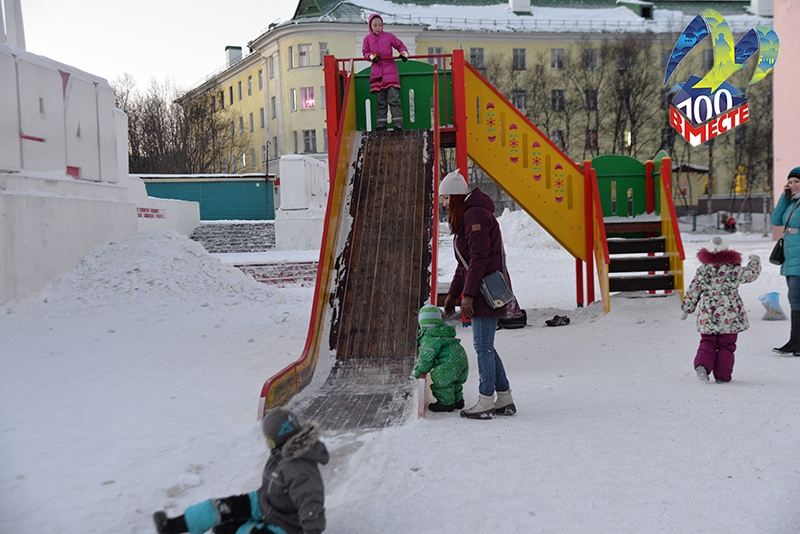 – После завершения монтажа украшений, будет установлена еще одна горка, чуть поменьше,– отметил заместитель начальника управления Ленинского административного округа Мурманска Руслан Кучерявый.