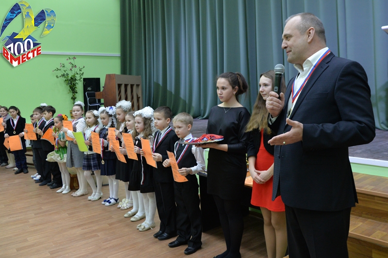 – Ваши успехи в учебе – это лучший подарок Мурманску в год его столетия, – обратился Андрей Сысоев к героям торжества. – Уже сейчас можно посчитать, что за время проведения акции ученики школы получили более 24 тысяч пятерок, уверен, эта цифра будет расти.