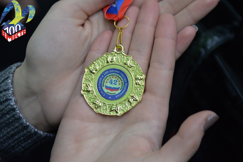 Акция «Сто пятерок к столетию города Мурманска» стартовала в школе №42 около года назад. Суть ее заключается в том, что ученик, получивший суммарно сто отличных отметок, становится обладателем медали. Зарабатывать баллы можно вплоть до приближающегося юбилея столицы Заполярья.