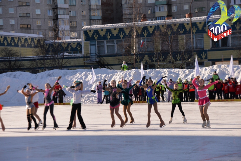 Более двухсот школьников, педагогов и родителей прошли торжественным парадом по стадиону. Собравшиеся увидели яркие выступления юных фигуристов и хоккеистов. И по традиции, которой несколько десятилетий, юных мурманчан встретил Белый медвежонок, символ детского спорта.