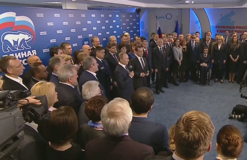 Президент Российской Федерации Владимир Путин и председатель «Единой России», Председатель Правительства РФ Дмитрий Медведев встретились с участниками предварительного голосования партии «Единая Россия».