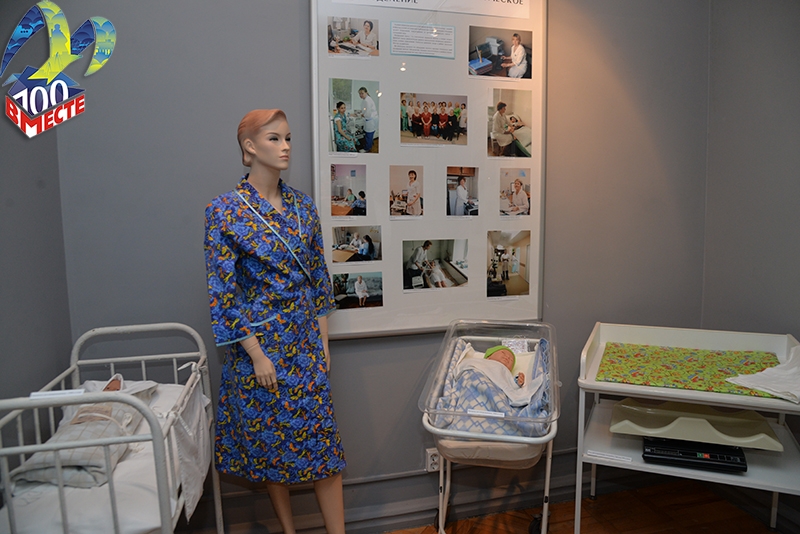 В экспозиции представлены предметы, с которыми на протяжении десятков лет были связаны трудовые будни докторов, акушеров-гинекологов, медсестер роддома. В их числе есть настоящие раритеты: письменный стол главного врача и детская кроватка, изготовленные в 1940-ых годах, один из первых аппаратов УЗИ-диагностики, коляска из синего кожзама.